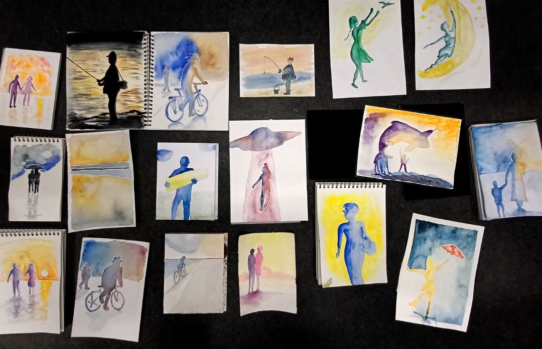 Das Aquarell besticht durch eine bemerkenswerte Leuchtkraft und Leichtigkeit. Die Farben bestehen aus feinen Pigmenten, die mit Wasser aufgelöst werden, wodurch wunderschöne, transparente und zarte Farbverläufe entstehen können. Wir lernen sowohl Grundtechniken als auch unkonventionelle, experimentelle Methoden der Aquarellmalerei kennen. Das Aquarell eignet sich zudem für Mischtechniken und kann mit anderen kreativen Techniken kombiniert werden.